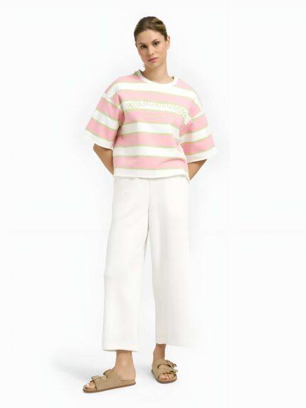 Smith & Soul: Oversize Polo Pique T-shirt in bubblegum und white