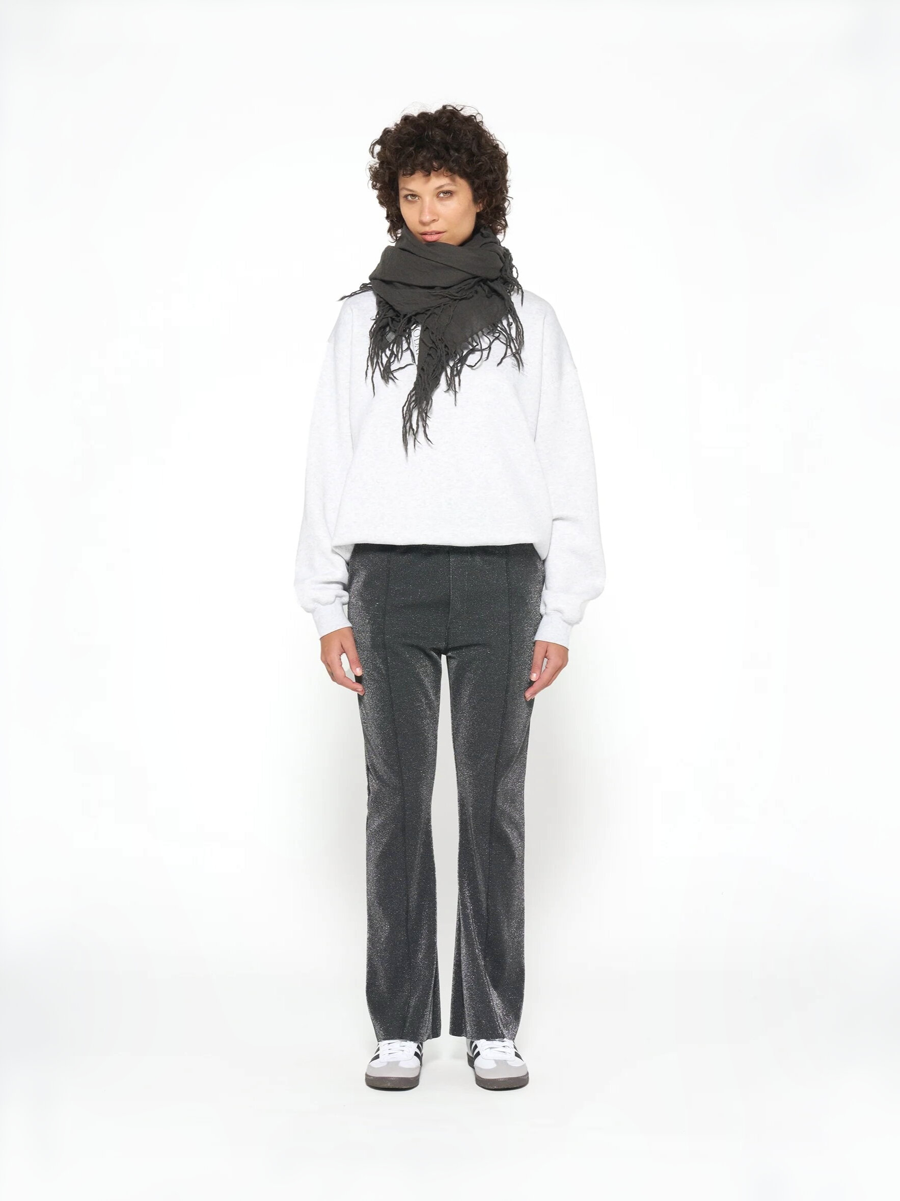 Slim Fit Schlaghose mit Glitzer, aus einem festen Elasthan-Mix. Mit einem elastischen Taillenbund, Eingrifftaschen, Hosenbeinen im Raw-Edge-Stil und einer Monogrammstickerei „10” unter der linken Hosentasche.