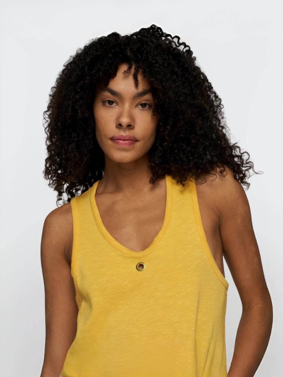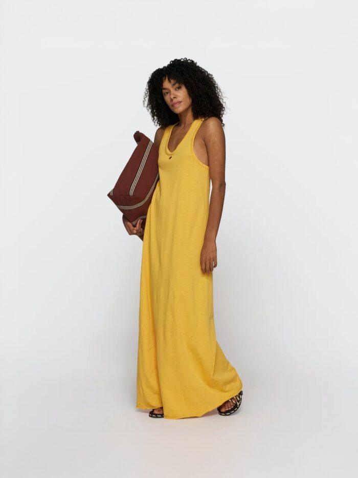 Regular Fit Midikleid, aus Beachfleece aus GOTS-zertifizierter Bio-Baumwolle gefertigt. Mit Racerback, Abschlüssen mit Raw-Edge-Optik und einer Metallöse auf der Brust.