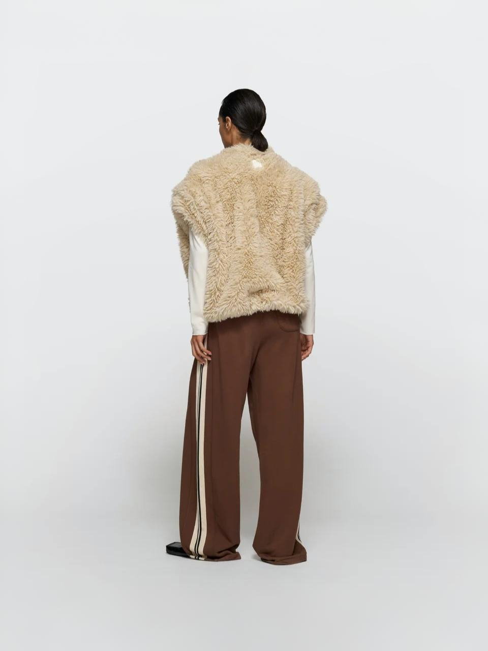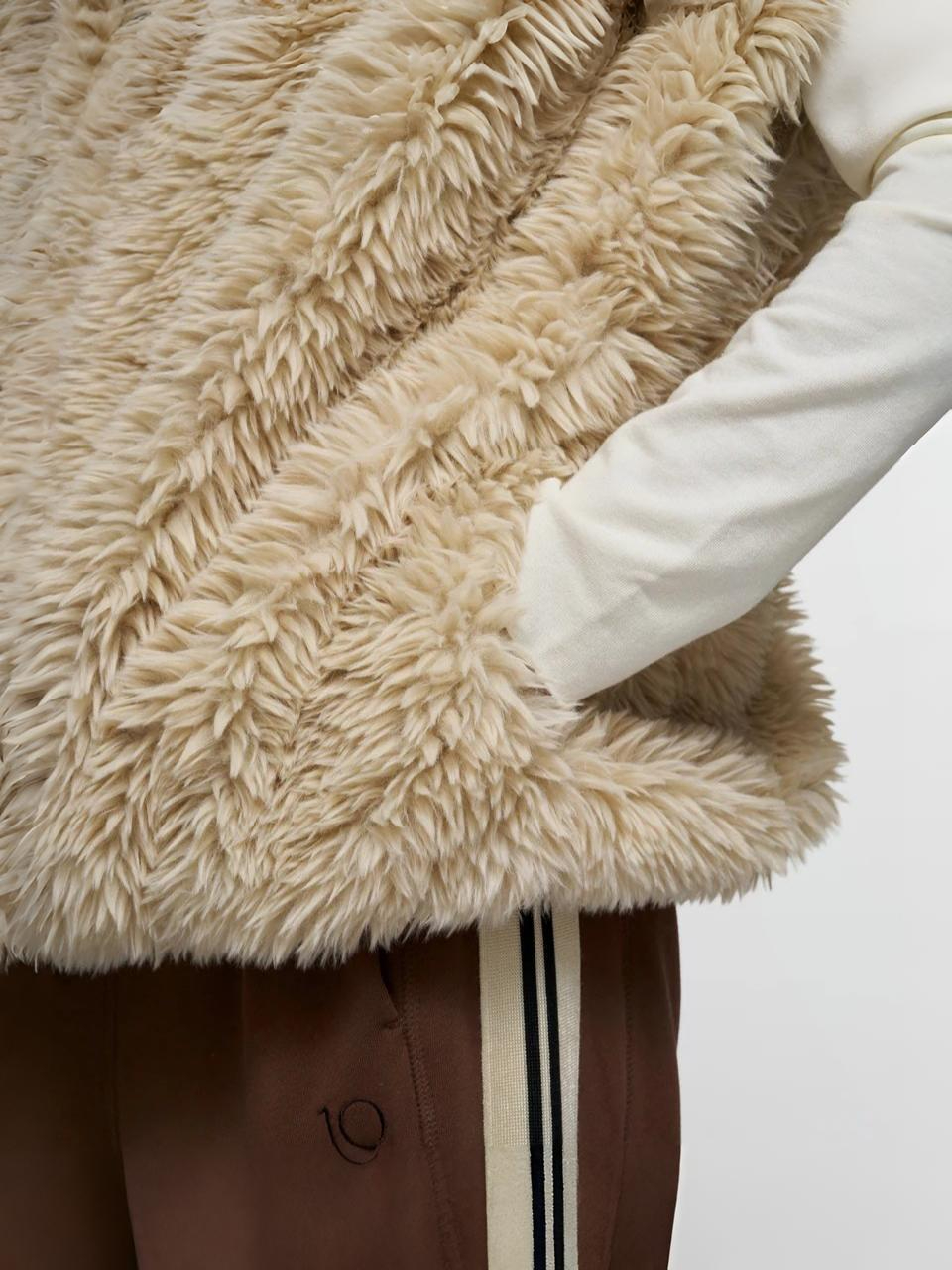 Oversized flauschige Weste aus weichem Polyester. Das Modell ist gefüttert und mit einem „10“-Monogramm-Print versehen, hat eine plissierte ballonförmige Passform, einen Reißverschluss an der Vorderseite, Schulterfalten und ein „Curly 10“-Logo auf dem Rücken.