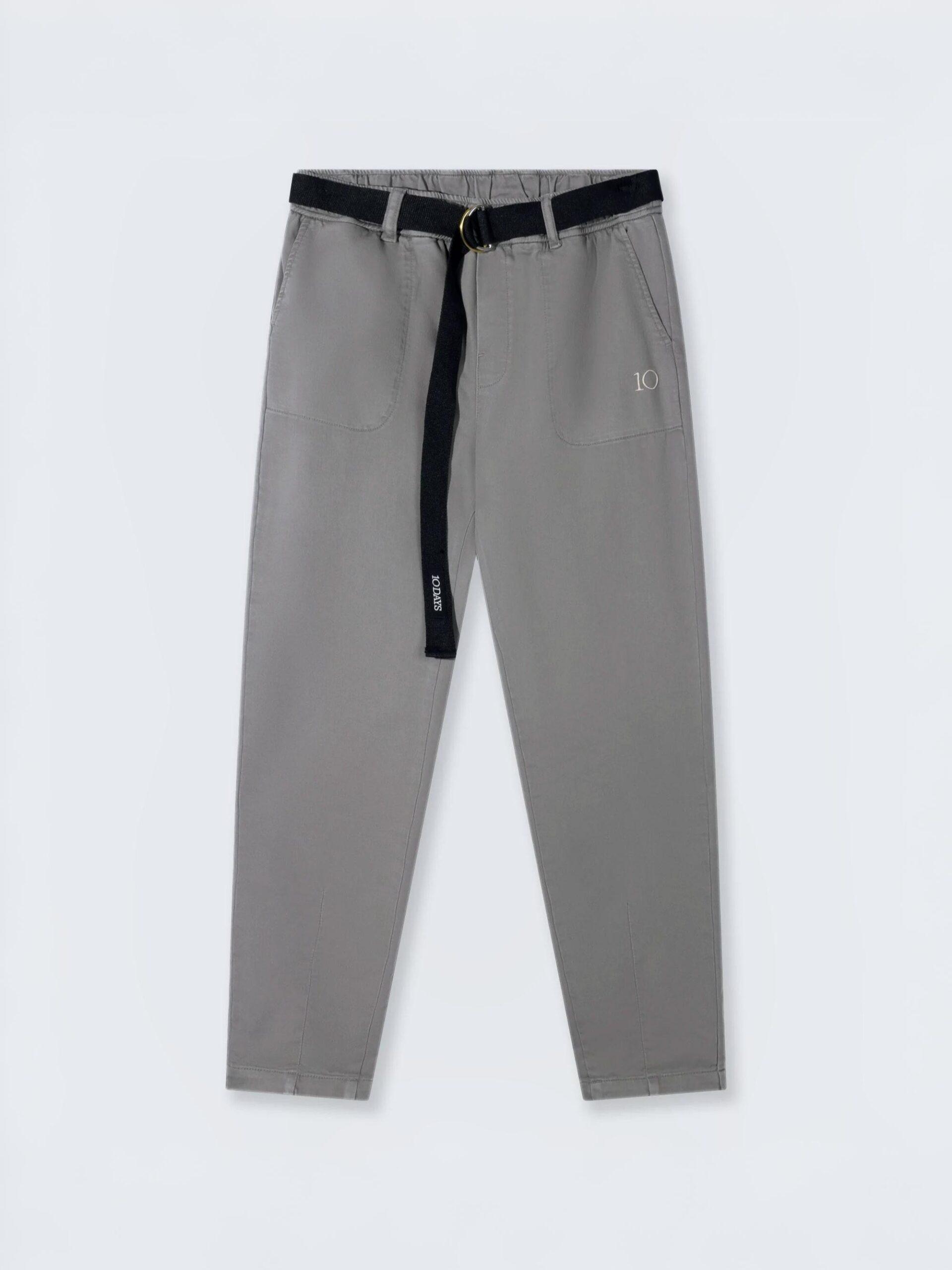 Schöne Hose mit normaler Passform und Gürtel, gefertigt aus einer bequemen Baumwoll-Polyester-Mischung. Verfügt über ein elastisches Tailleband mit Gürtelschlaufen und verstellbarem Gürtel, schräg angebrachte Seitentaschen, eine falsche Gesäßtasche, ein ’10DAYS‘-Logo am Gürtel und eine ’10‘-Monogramm-Stickerei unter der linken Seitentasche.
