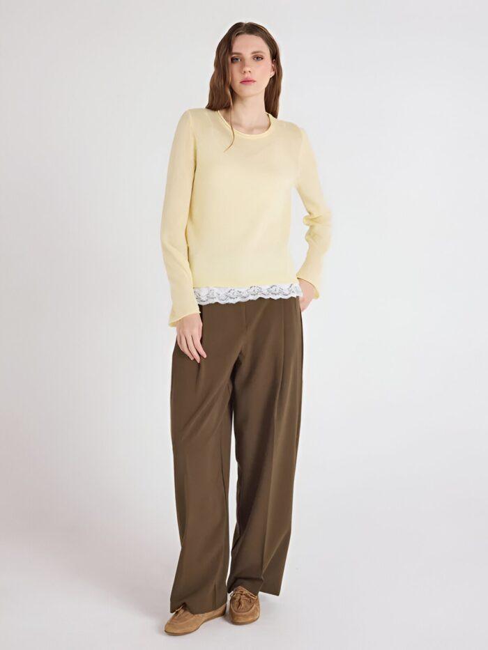Ein feines, leichtes und luftiges Strickteil, ideal für den Sommer. Aufgrund seiner empfindlichen Beschaffenheit benötigt es besondere Pflege. Um seine Schönheit zu bewahren, empfehlen wir, das Kleidungsstück zu falten statt aufzuhängen, da Kleiderbügel die Struktur beschädigen könnten. Behandeln Sie es sorgsam, damit es Ihnen Saison für Saison Freude bereitet.