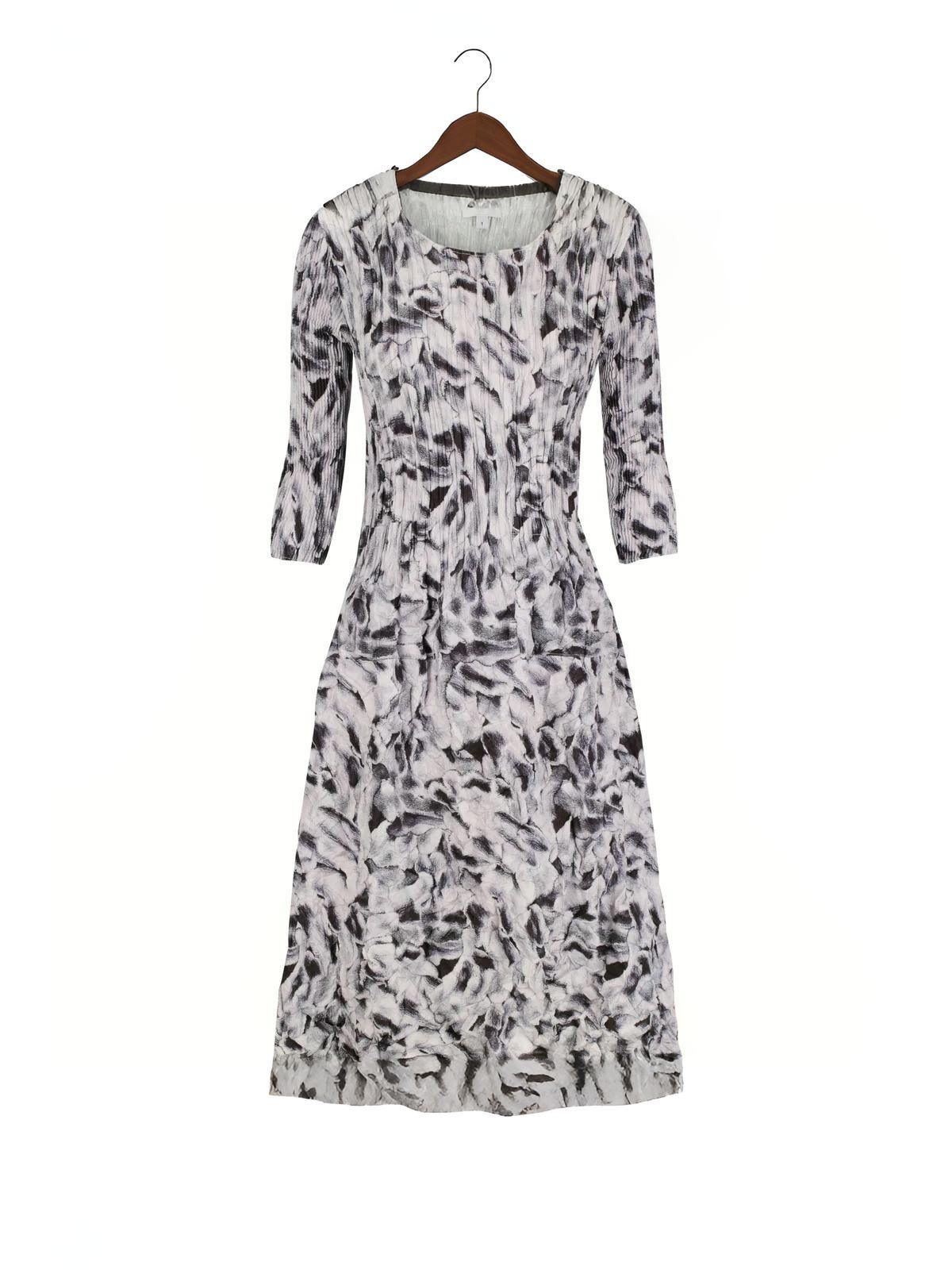 Das Smash Pocket Plissee Kleid mit 3/4 Arm von Alquema ist ein tragbares Kunstwerk, das sich dem individuellen Körper anpasst. Dank der dreidimensionalen Struktur des Gewebes legt sich das Kleid sehr schmeichelhaft um den Körper, ohne abzuzeichnen. Das Kleid besteht aus Satin, dessen matte Seite außen liegt. Das Smash Pocket Kleid ist knielang, hat ¾ lange Arme, einen Rundhalsausschnitt und zwei aufgesetzte Taschen auf der Vorderseite. Die Plissees verlaufen im Bereich des Oberkörpers vertikal und im Bereich des ausgestellten Rocks in alle Richtungen. Die handgearbeiteten Plisseefalten verleihen den Kleidern des australischen Modelabels Alquema ihre unverwechselbare Silhouette. Die Kleider sind aufgrund der Plissees in der Größe sehr flexibel. Ein ideales Kofferkleid, in dem FRAU nie schwitzt …