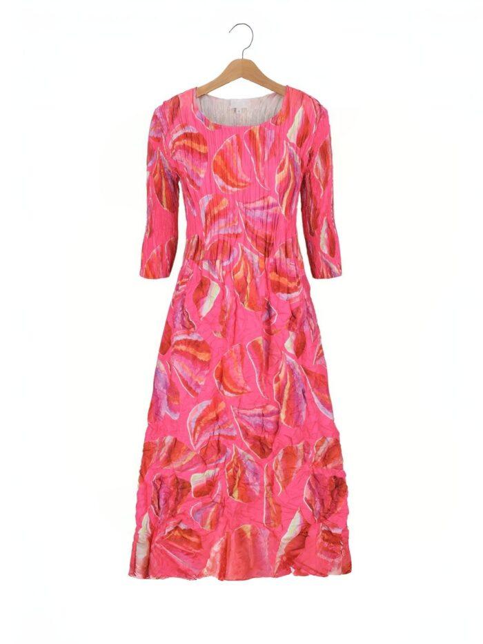 Smash Pocket Plissee Kleid mit 3/4 Arm in wunderschönem Farbmix