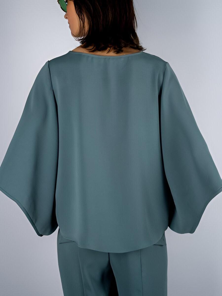 Hier eine tolle Bluse mit langem raffiniert geöffnetem Ärmel, die FRAU sowohl sportlich als auch sehr schick tragen kann. Die passende weiter geschnittene Hose in „pine“ findest Du auch in unserem Shop. Sollte Deine Größe vergriffen sein, schick uns eine Nachricht und wir kümmern uns, damit Du Dein Traumteil bekommst …