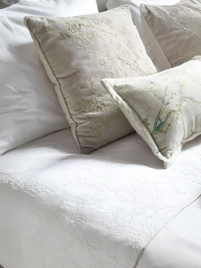 Der Bettbezug Broderie Fleuri ist Teil der offiziellen Zusammenarbeit mit dem Van-Gogh-Museum und strahlt pure Eleganz aus. Das dezente, bestickte Blumenmotiv ist inspiriert von Van Goghs Gemälde Mandelblüte und erwacht wunderschön auf dem weißen Hintergrund zum Leben. Die feinen Linien und die helle Reliefstruktur verleihen dem Muster ein zeitloses, beruhigendes Erscheinungsbild. Dank des schlichten Rückens können Sie wählen, ob Sie einen ruhigen oder reich detaillierten Look möchten. Perfekt für alle, die ein stilvolles und natürliches Gefühl zum Aufwachen lieben.