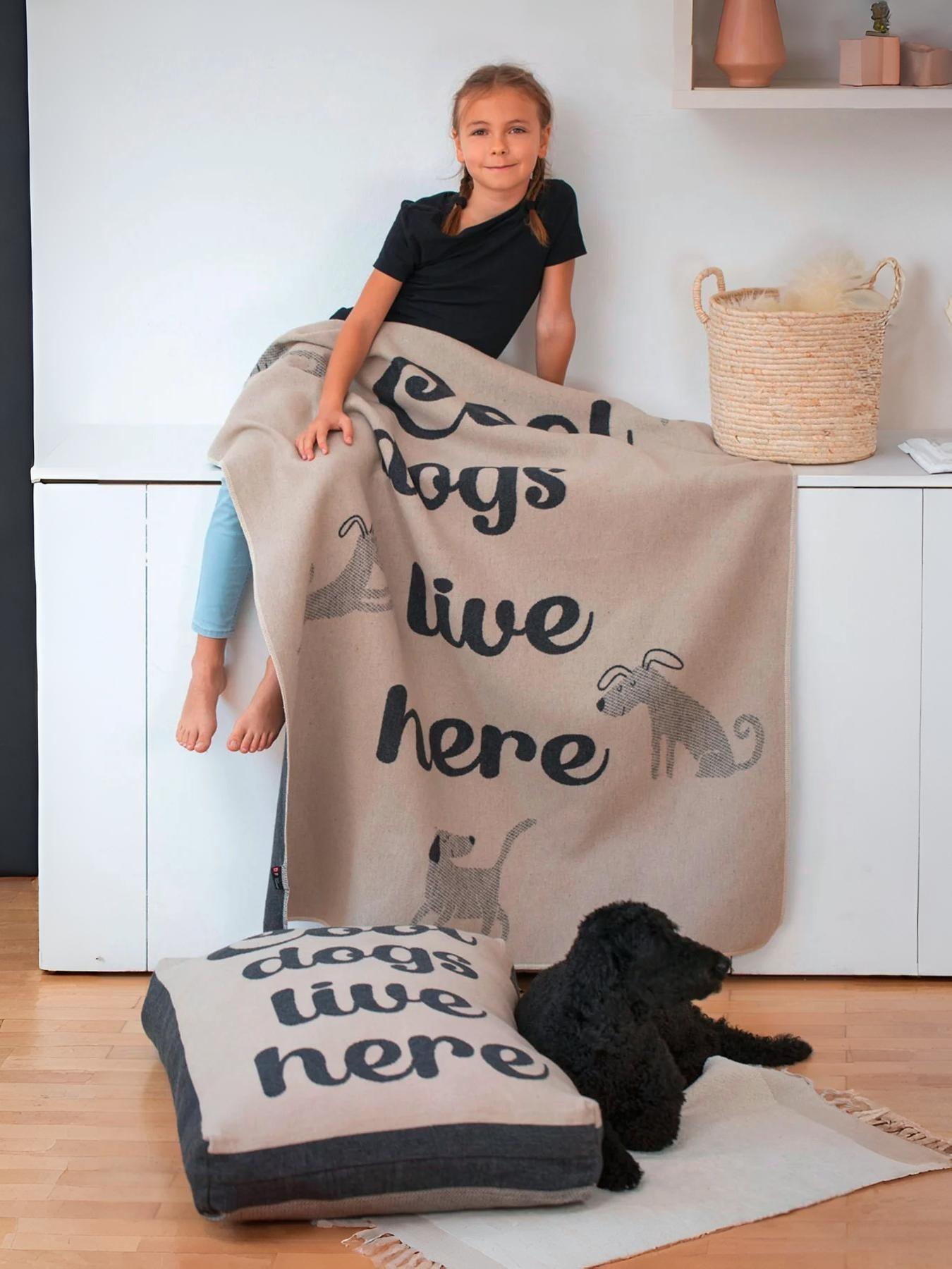 David Fussenegger: Haustierdecke “cool dogs live here” 100 x 140 in natur