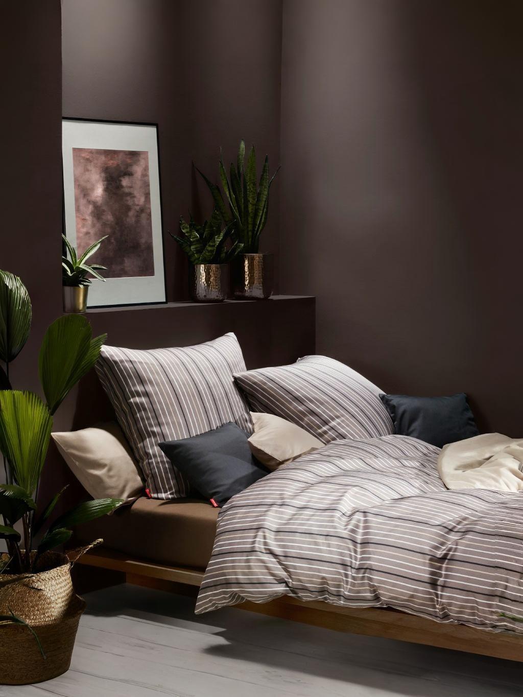 Die harmonisch aufeinander abgestimmten feinen Streifen verlaufen längs über die hochwertige Mako Satin-Bettwäsche und verleihen ihr einen eleganten Look.