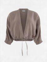 Die Bluse in dunkelbraun ist eine leichte Wahl für den Sommer. Die Mischung aus 85 % Modal und 15 % Polyester sorgt für eine weiche und glatte Qualität. Die Dreiviertelärmel mit elastischer Oberfläche sorgen für zusätzlichen Komfort. Das Krawattendetail am unteren Rand verleiht dem Design einen dezenten Akzent. Leicht zu kombinieren mit der Hose „JOLENE“ und dem Shirt „FLIRT“ aus unserem Shop.
