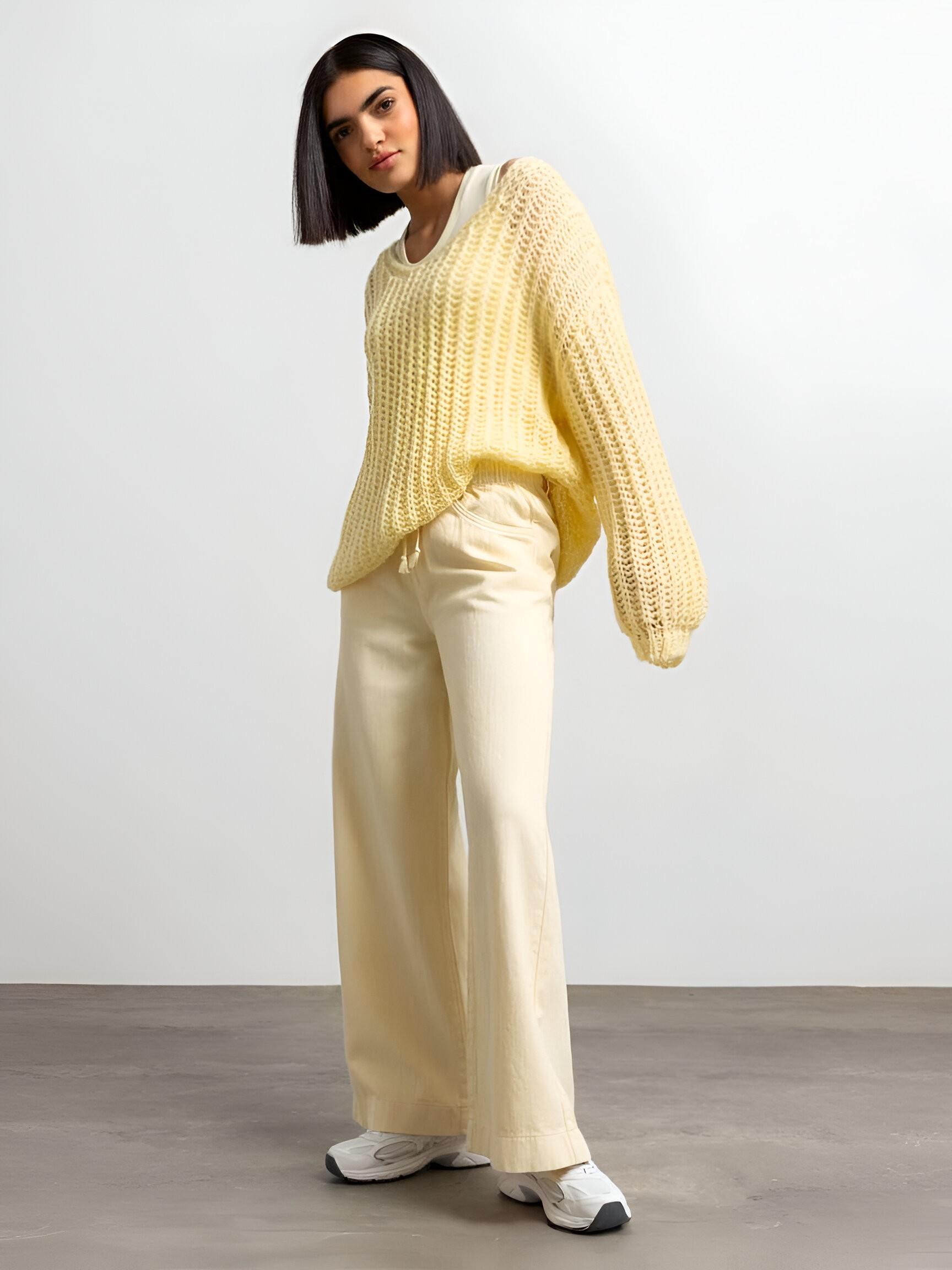 Ein Traum von Farbe! Butteryellow heißt der pastellige Gelbton, der jetzt die Outfits dominiert und perfekt zu dem Loose Fit Pullover von SENSES.THE LABEL passt. Der leichte, flauschige Pullover ist mit einem tiefen Rundhalsausschnitt gestaltet und mit weiten Ärmeln. Er trägt sich sehr angenehm auf der Haut, sieht edel aus in monochromen Looks und natürlich mit Denim!