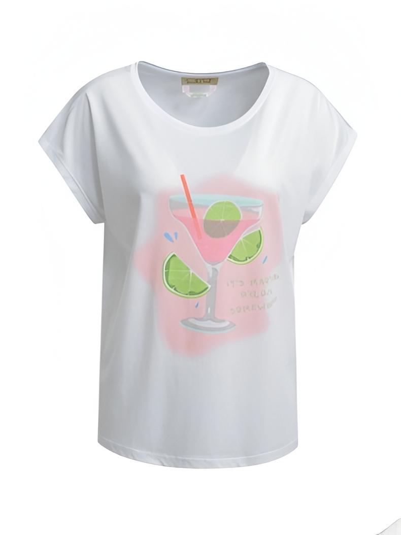 Sommerlich, vielseitig, stylisch! Dieses locker geschnittene T-Shirt bringt mit seinem angesagten Print vorne frischen Schwung in Ihre Garderobe. Die bequeme Passform sorgt für eine entspannte, moderne Ausstrahlung und viel Komfort. Tragen Sie es zu Denim-Shorts für einen sommerlichen Alltagslook oder zu einer High-Waist-Jeans für einen coolen Streetstyle. Ein vielseitiges Shirt, das Ihre Outfits mühelos aufwertet!