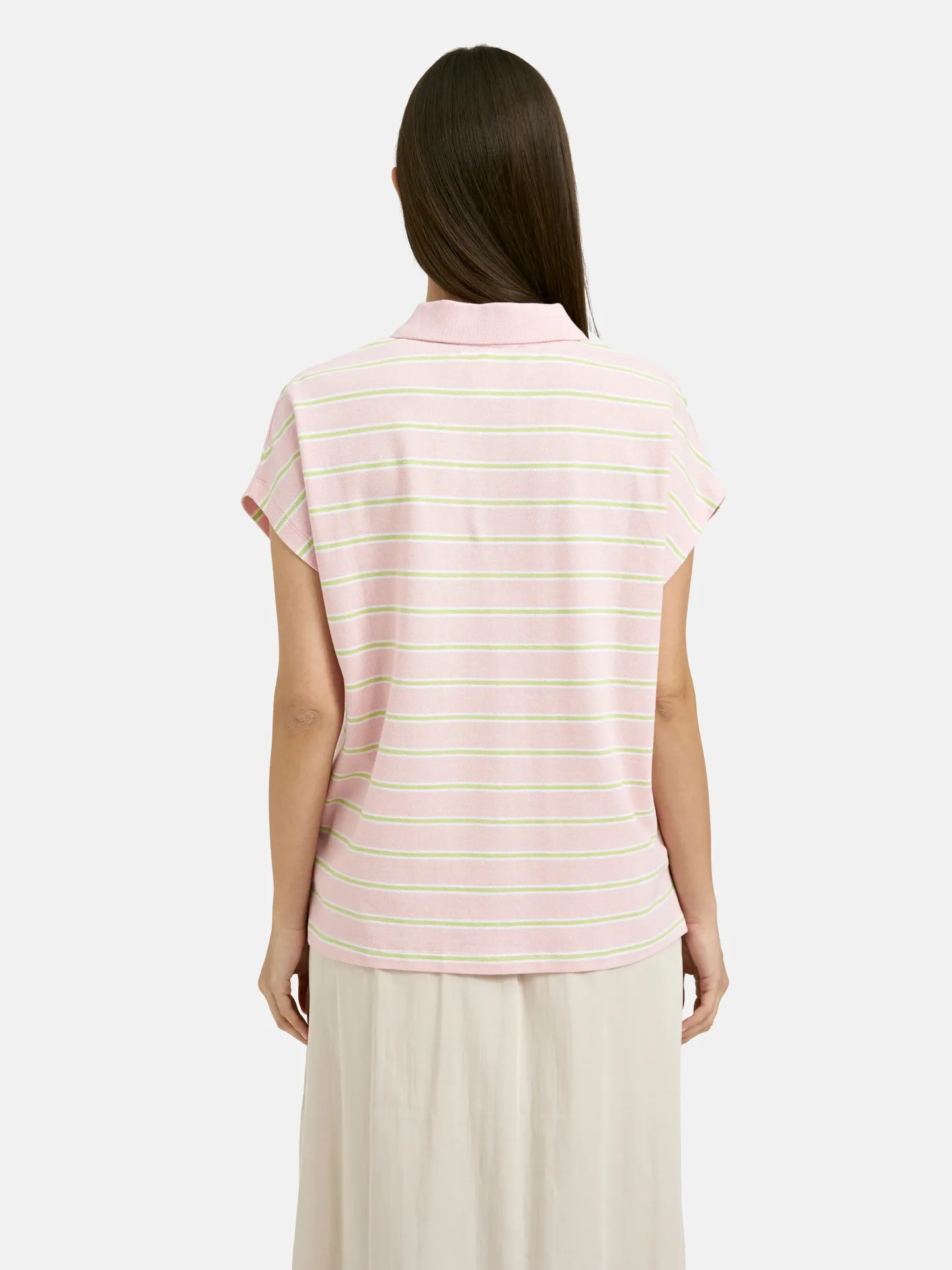 Smith & Soul: Oversize Polo Pique T-shirt in bubblegum und white