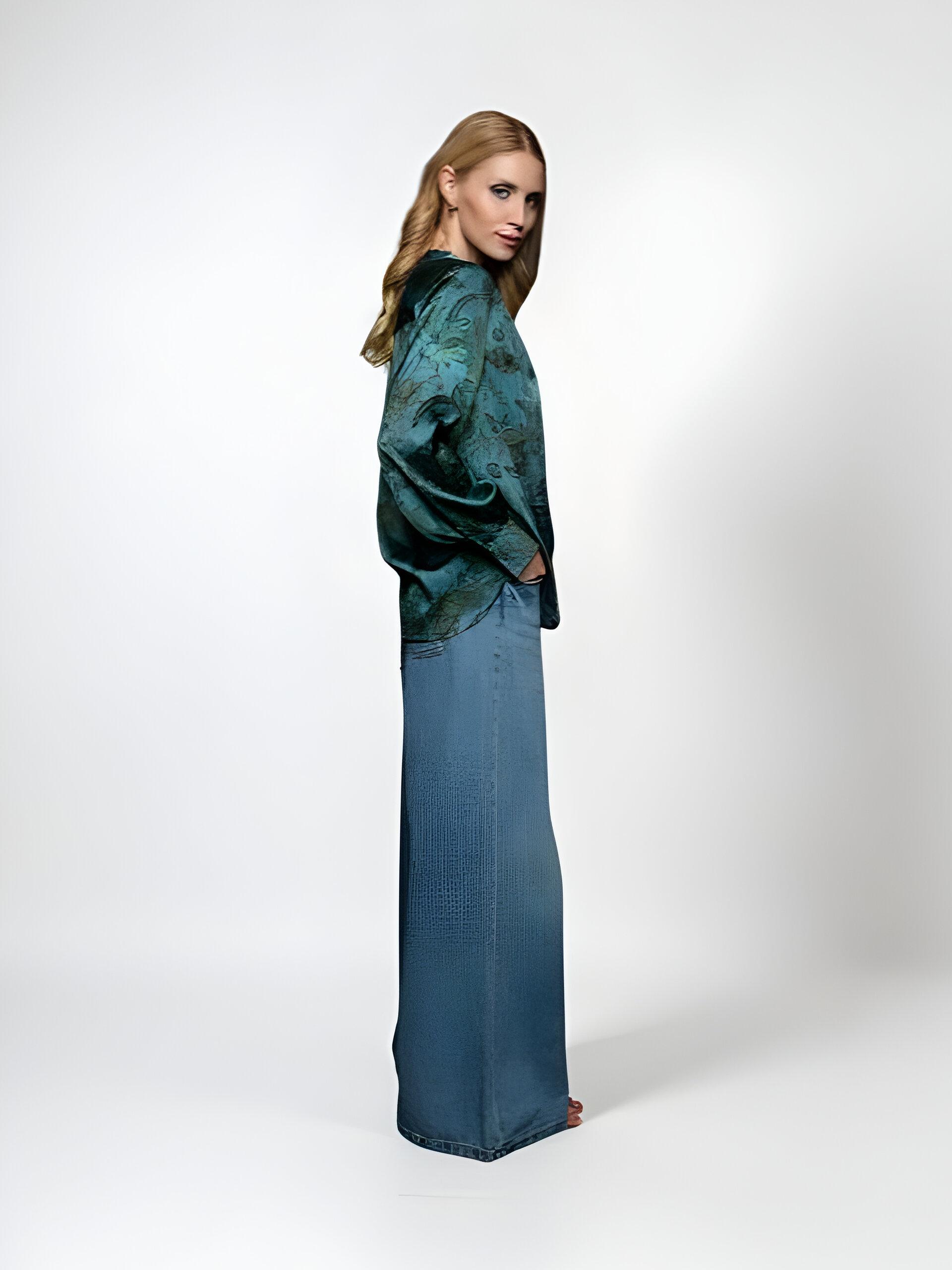 Tonno & Panna: Seiden TOP “ LILOU“ in light aqua und türkis