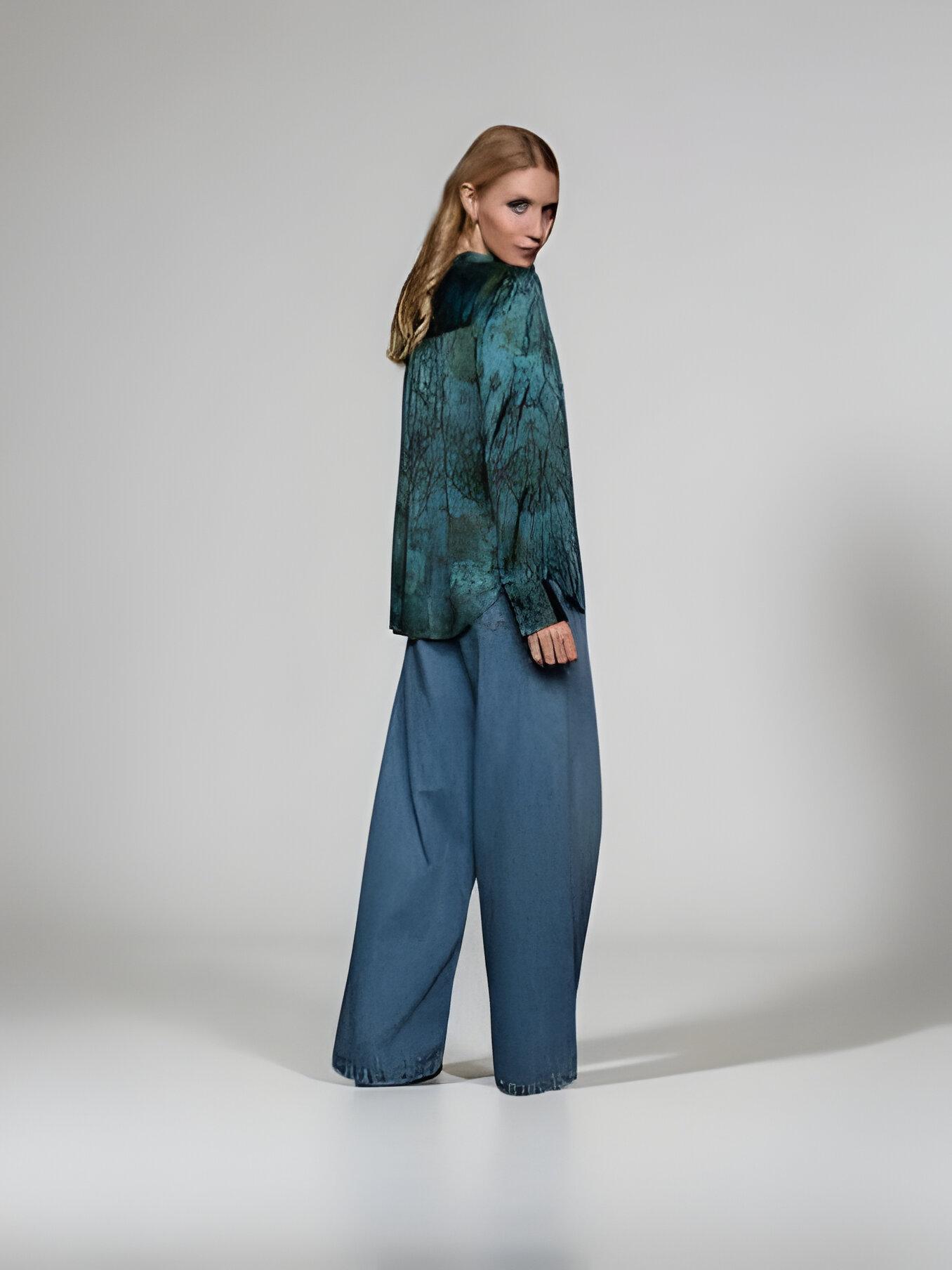 Tonno & Panna: Edle Schluppenbluse mit Stehkragen in green-flowers