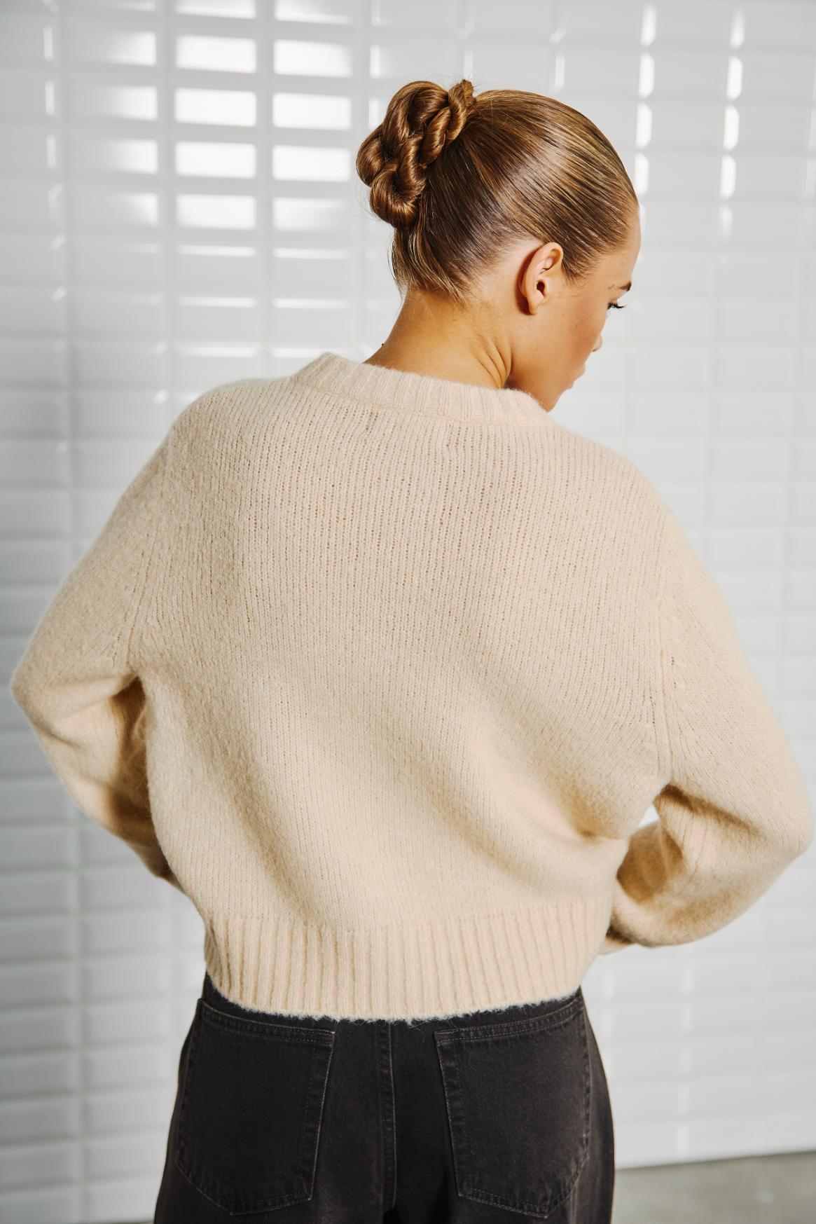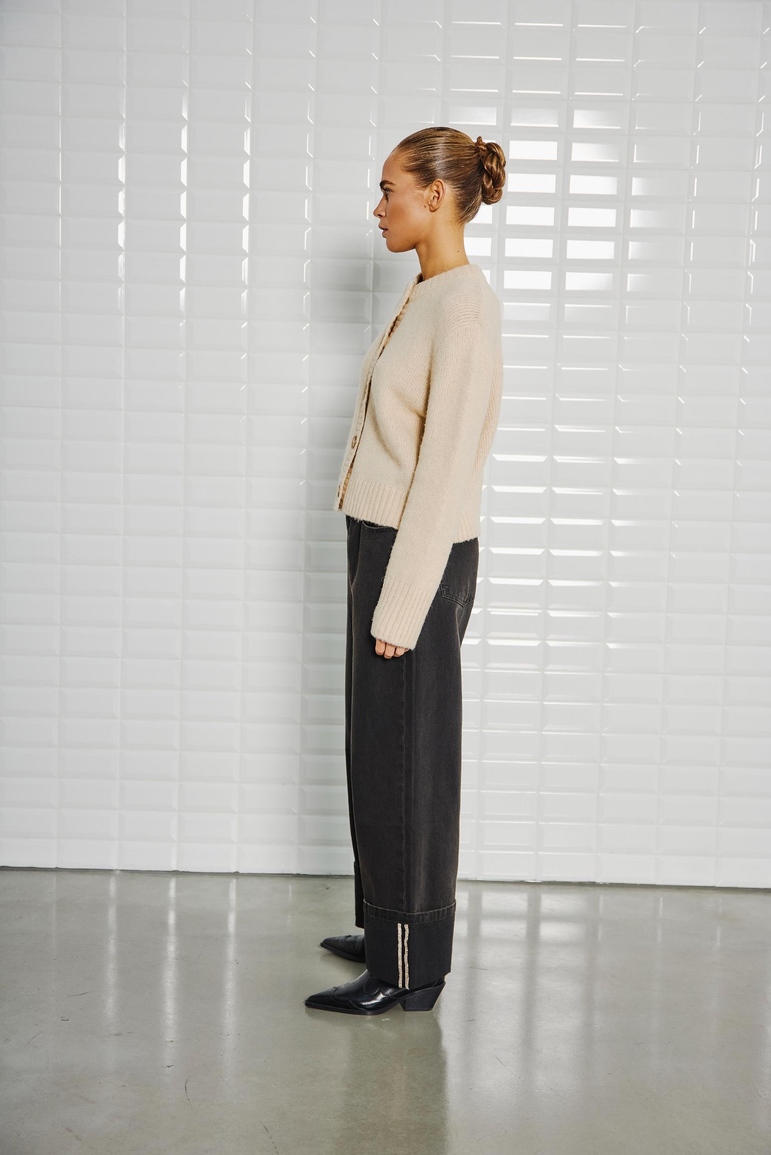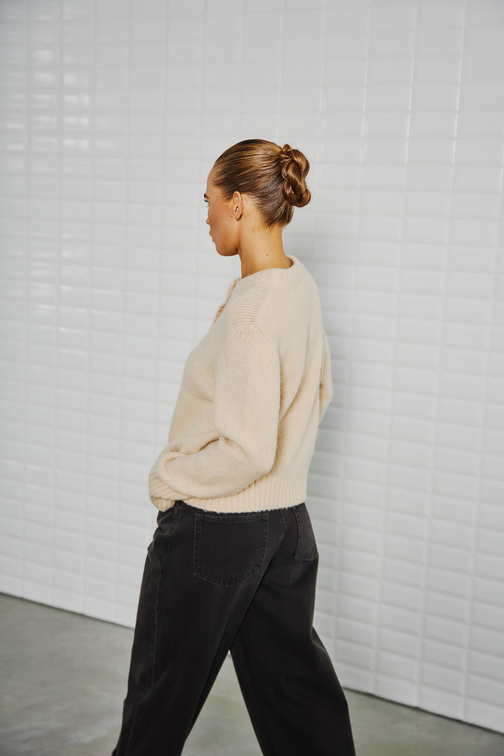 WithBlack: Schöner Cardigan „MYLA“ mit 30% Alpaka in der Farbe almond cream