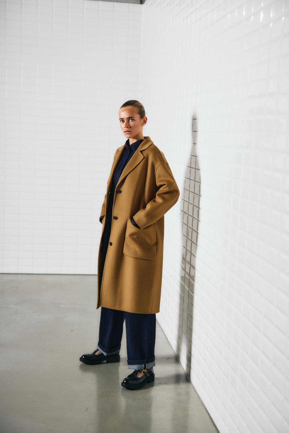 WithBlack: Wollmantel „CELINE“ in der Farbe camel